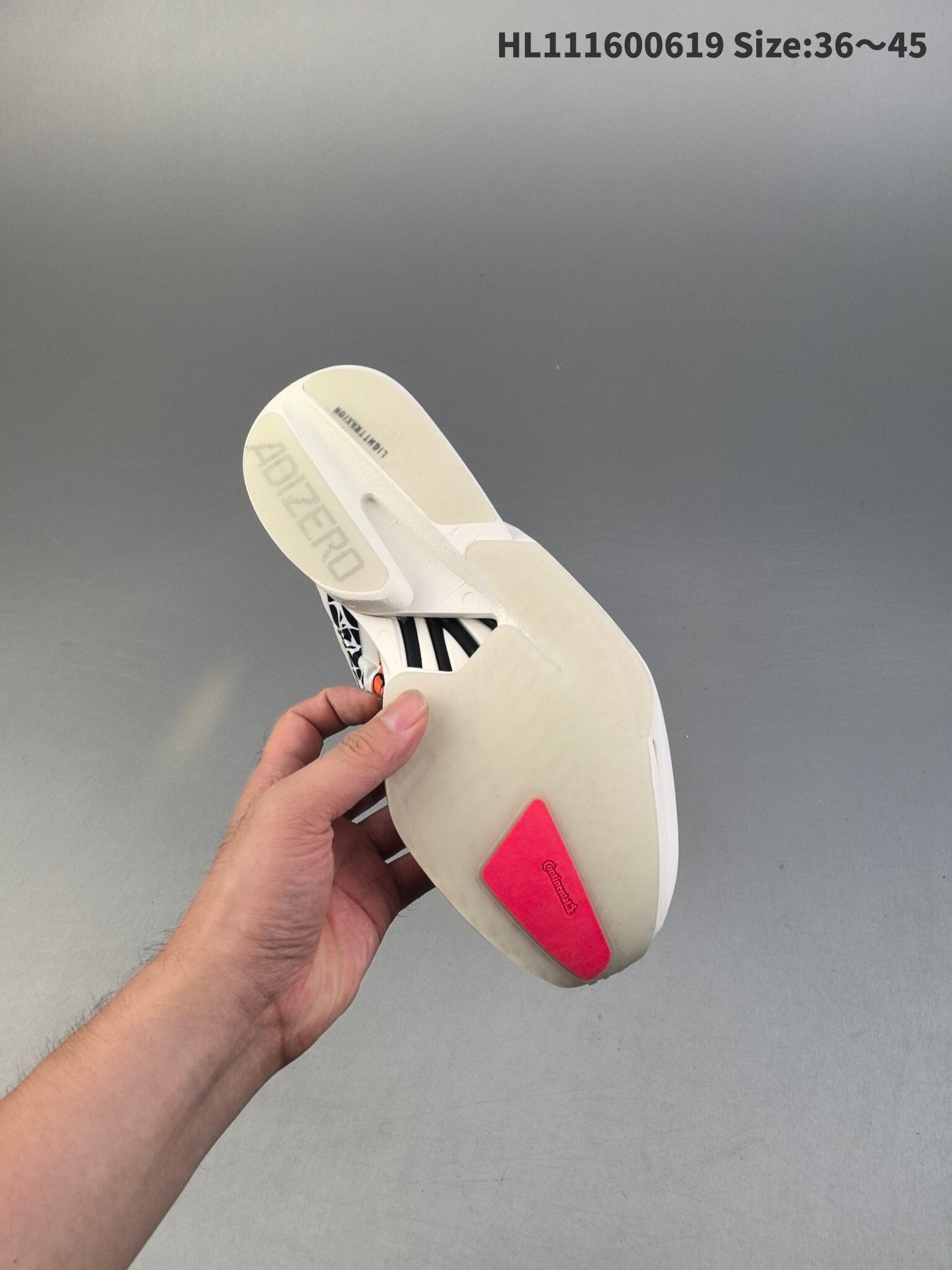 Suela Lighttraxion con Caucho Continental™: Para mantener la ligereza, la suela utiliza el compuesto Lighttraxion, complementado estratégicamente con un parche de caucho Continental™ en la zona del antepié (bajo los metatarsos). Esto garantiza una tracción sobresaliente y un agarre preciso, incluso en asfalto mojado, donde realmente lo necesitas para el despegue.