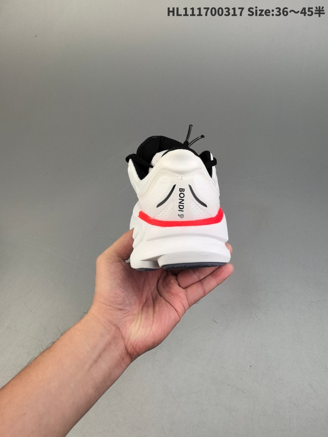 HOKA Bondi 9 | Cloud White/Core Black/Crimson Fade