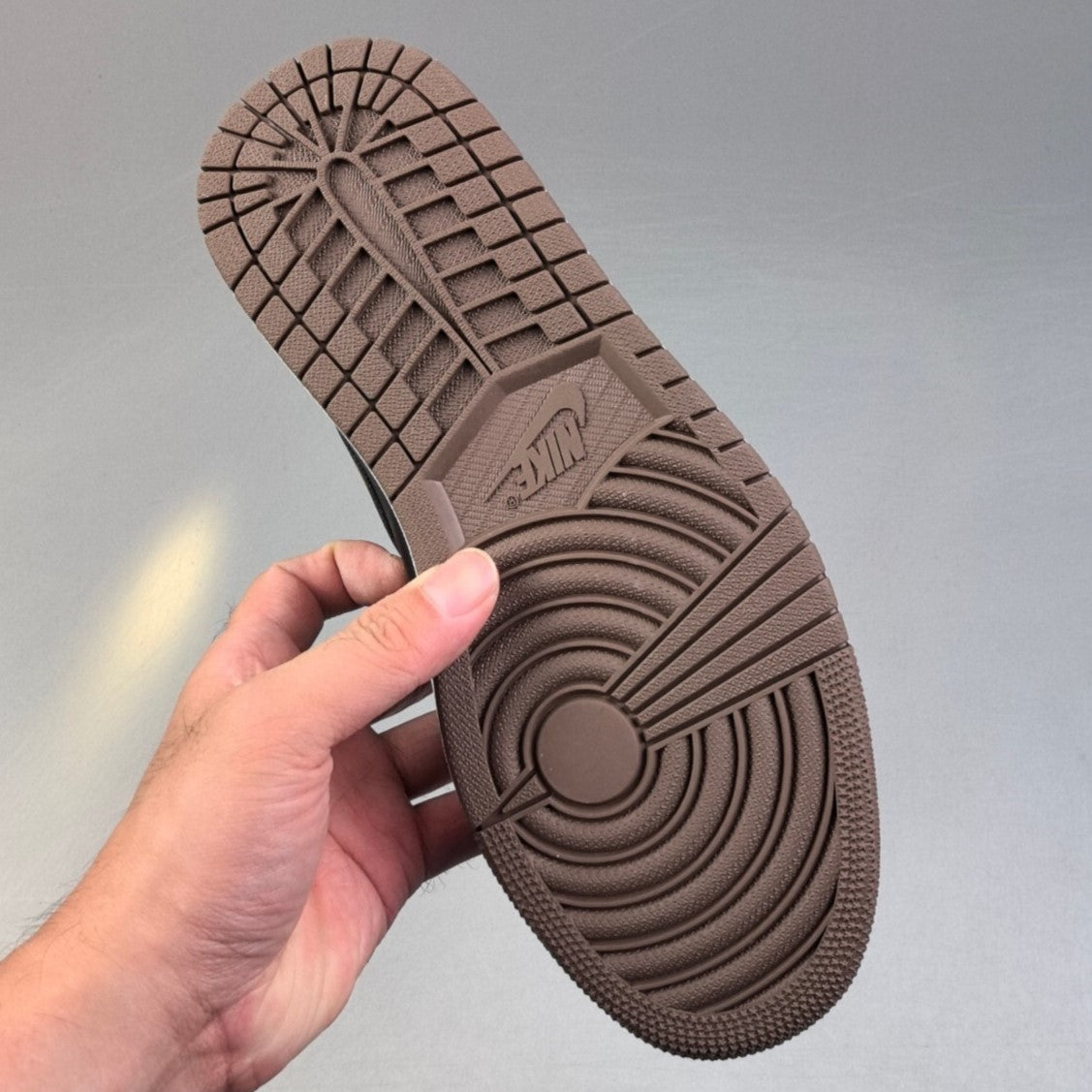Tracción: La suela exterior de goma sólida presenta el patrón de tracción circular clásico de las AJ1, ofreciendo un agarre confiable en una variedad de superficies.