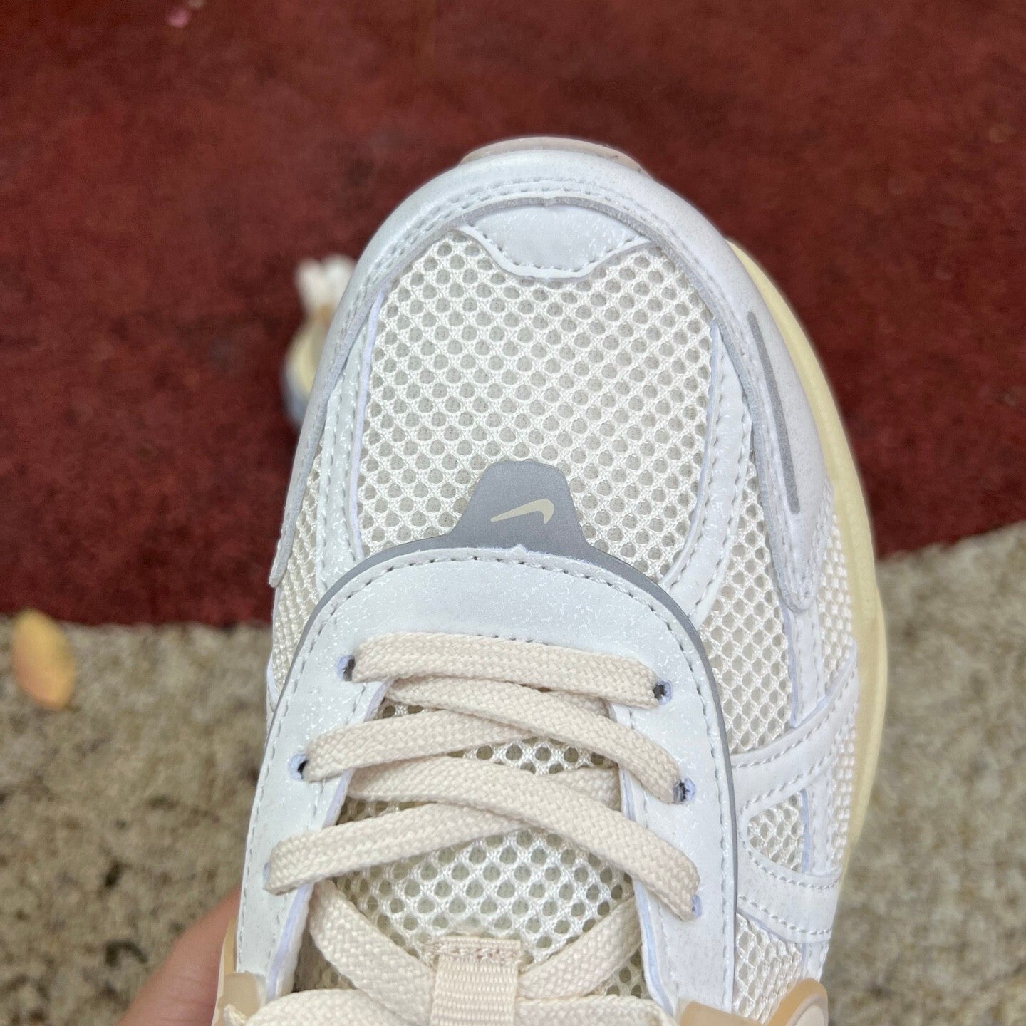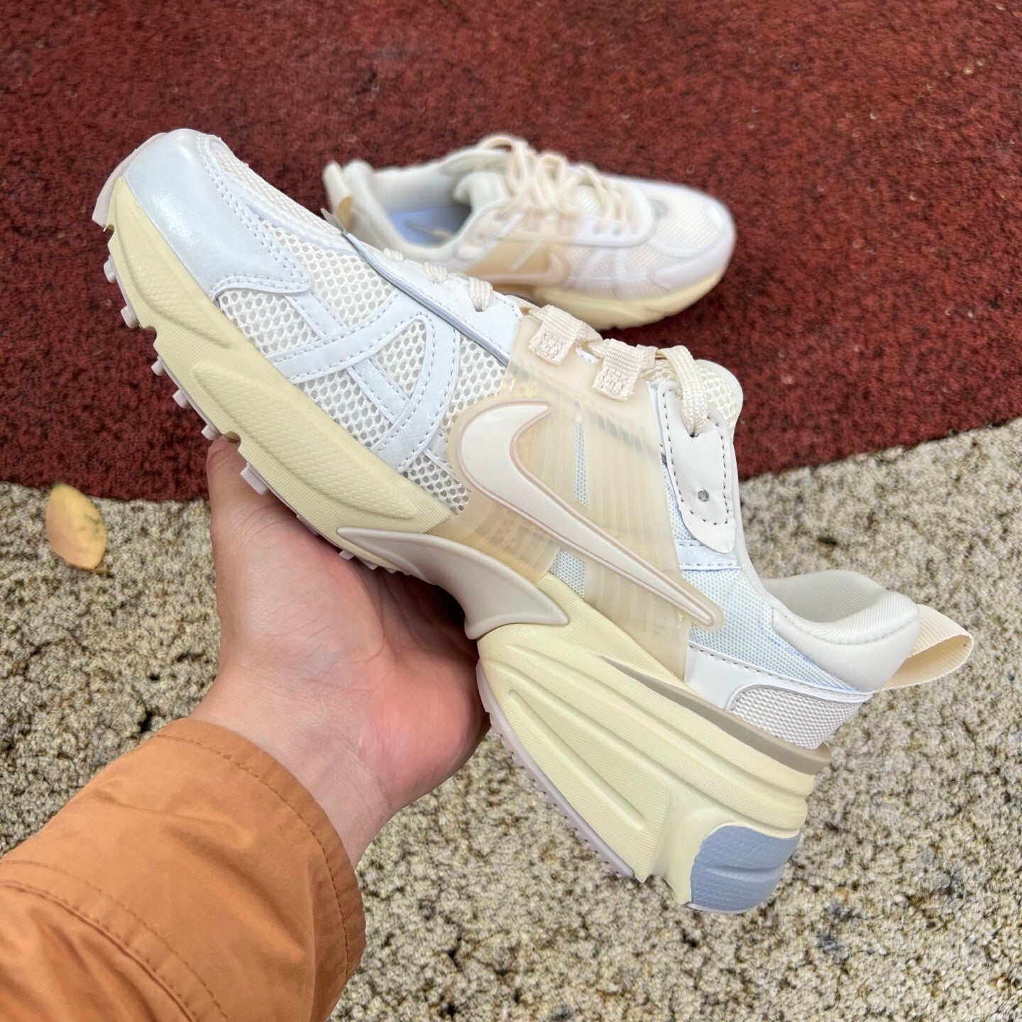 Referencia Clásica: Los detalles de plástico translúcido en el diseño rinden homenaje al icónico modelo Nike Vomero 5.