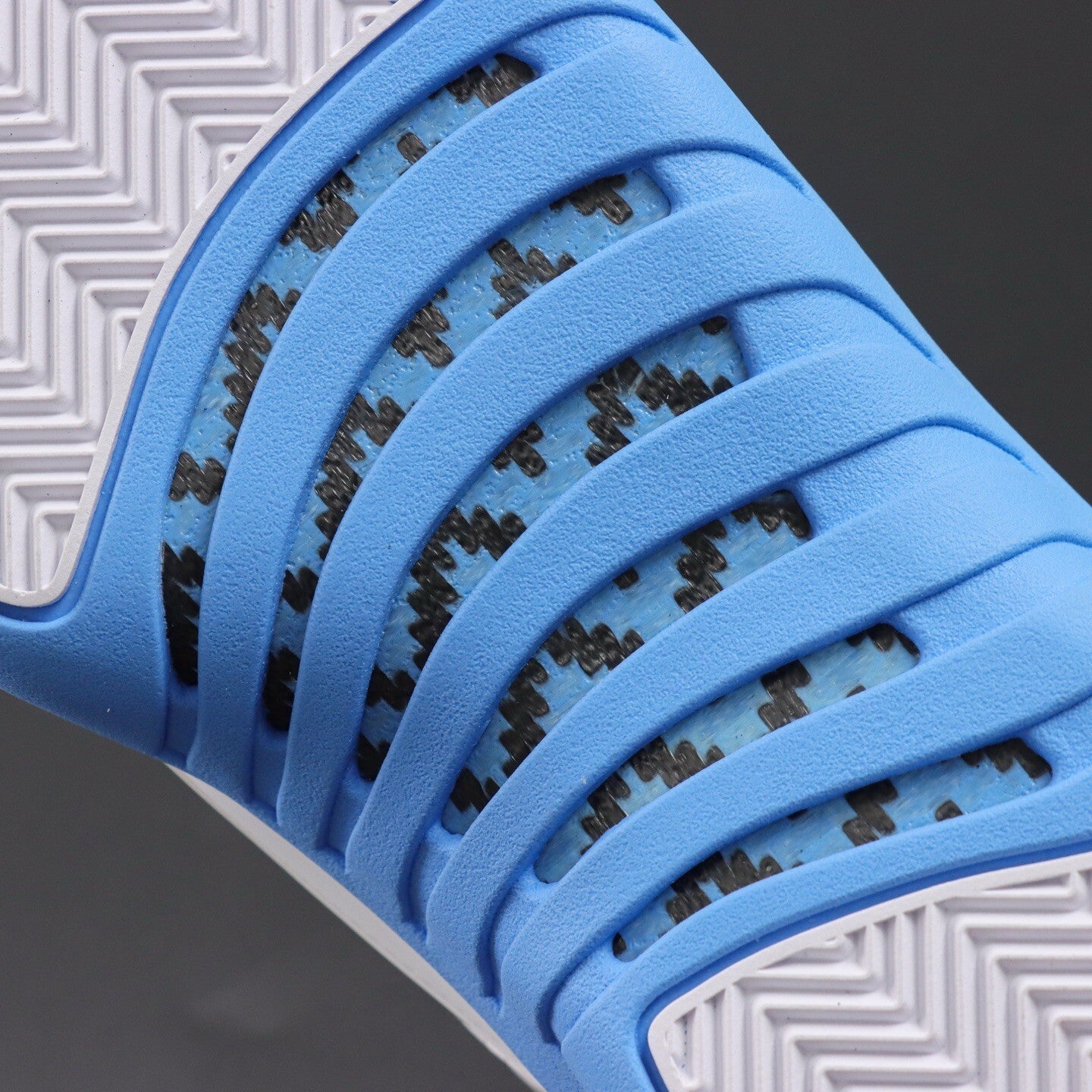 Placa de Fibra de Carbono: Incluye una placa de apoyo de fibra de carbono en el mediopié. Esta característica ofrece una rigidez torsional excelente y un soporte superior, lo que mejora la estabilidad durante movimientos laterales explosivos.